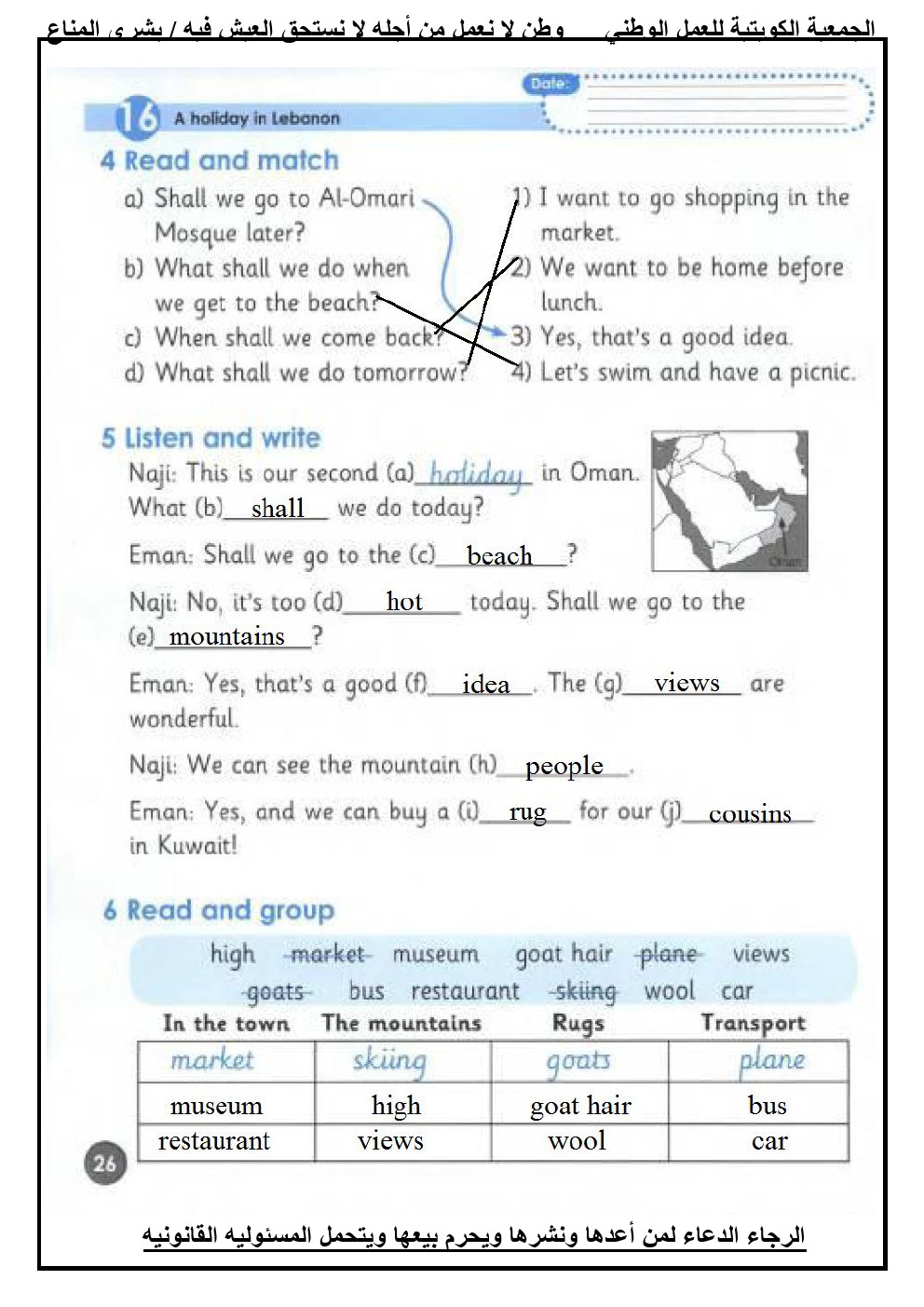 أنت هنا: موقع المناهجالمناهج الكويتية الصف الرابع لغة انجليزية الفصل الثاني حلول