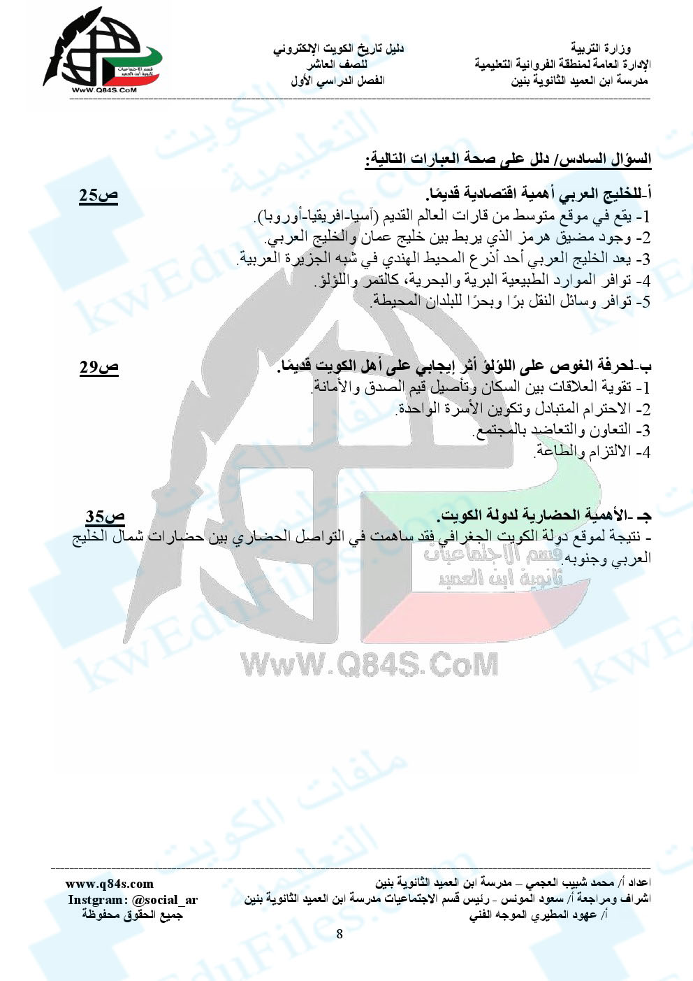 أهلاً بكم جميعاً طلاباً ومدرسين وأهالي طلبة ومهتمين، في قسم دولة الكويت ، نحن الآن في الفصل الأول من العام الدراسي 2025/2026 وتاريخ اليوم 2025/10/09 م | |