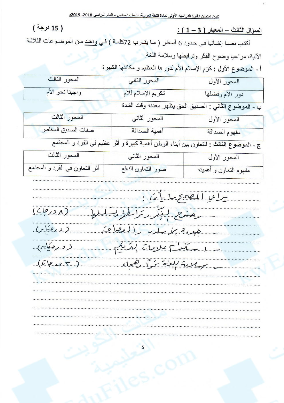 1. نموذج إجابة منطقة الفروانية التعليمية