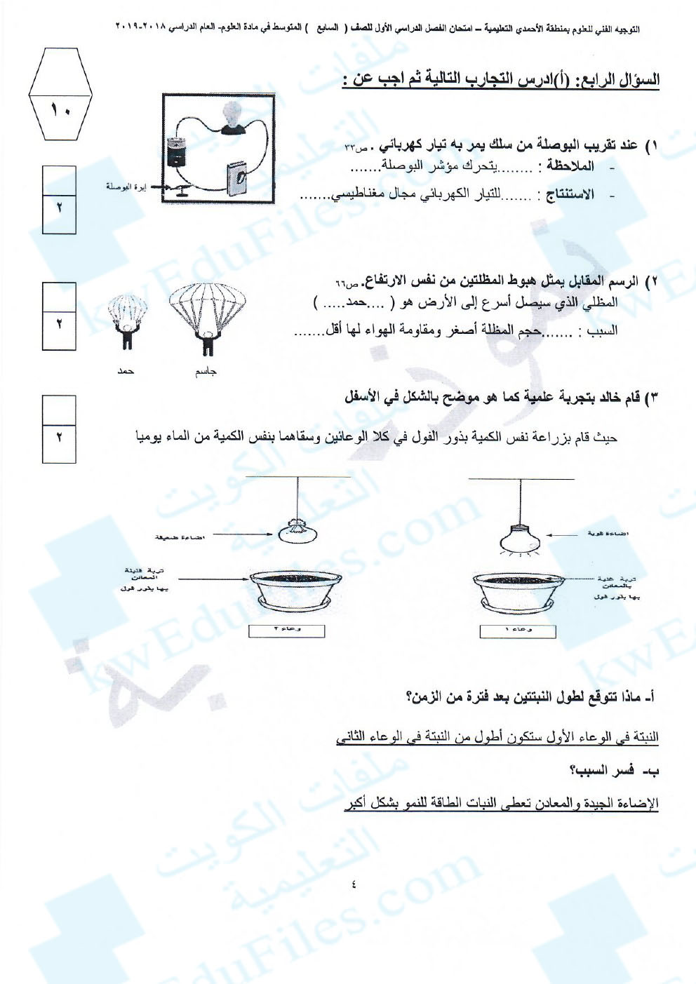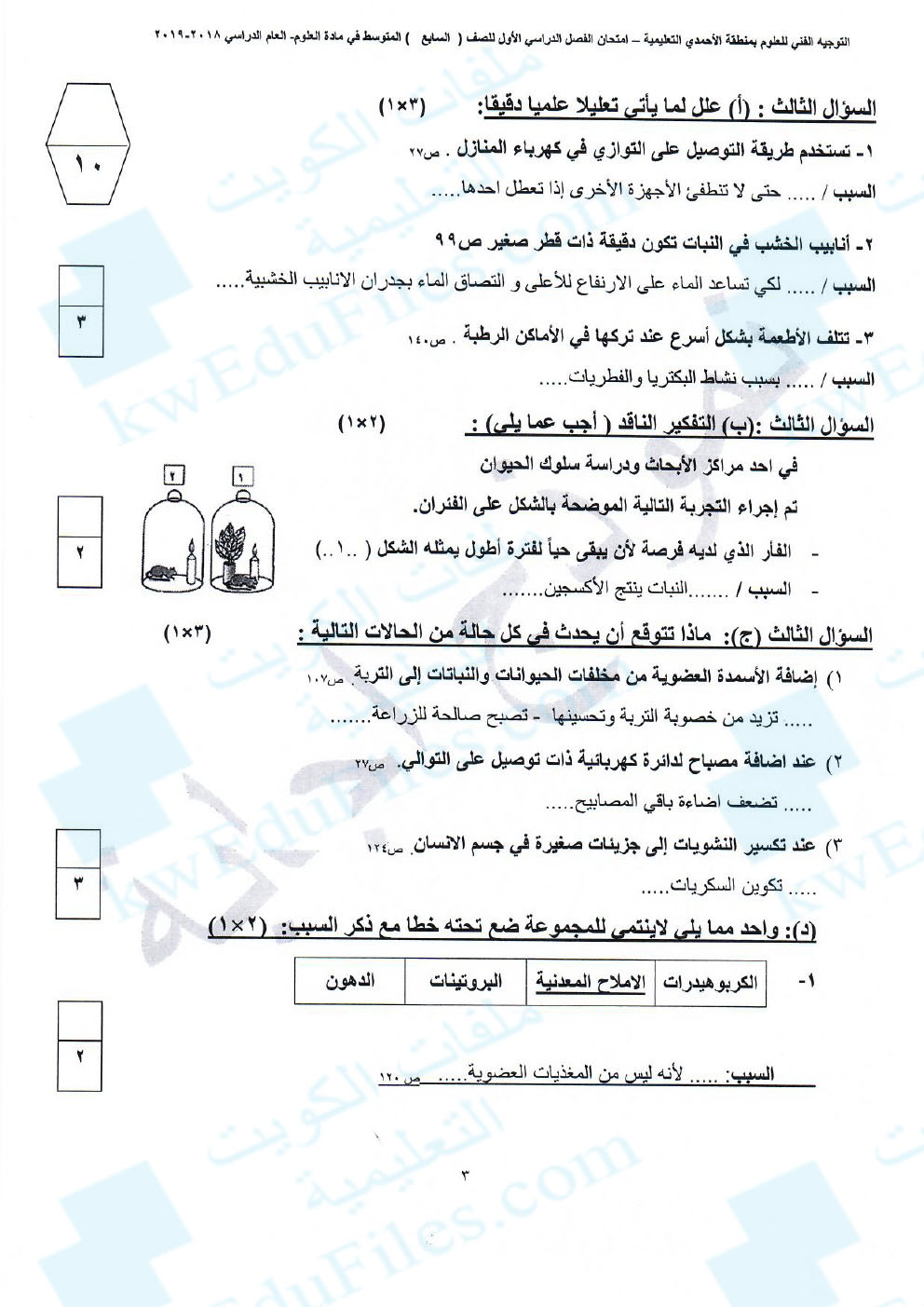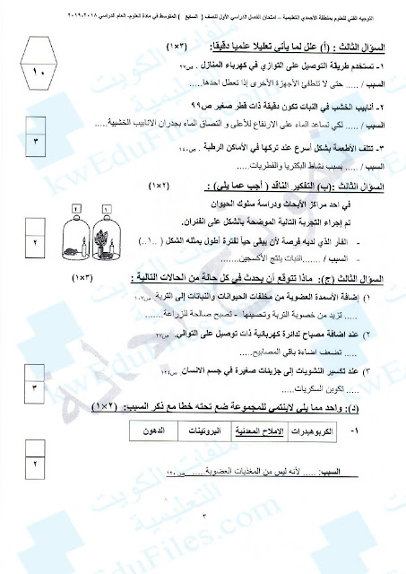 3. نموذج إجابة منطقة الفروانية التعليمية