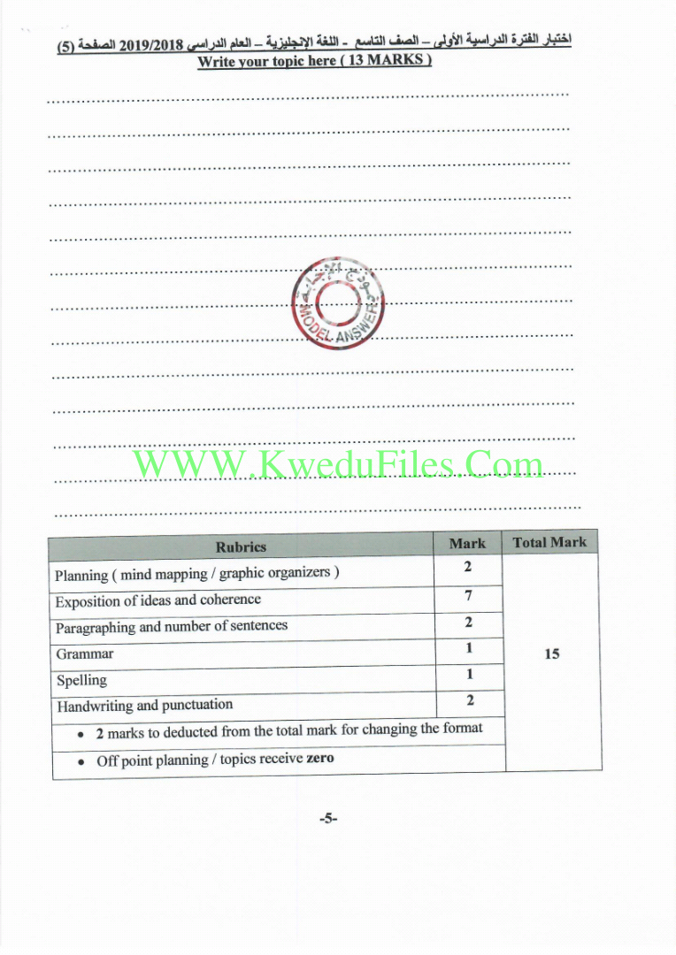 9. نموذج اختبار كتابة يتضمن موضوعين مع إجابات نموذجية