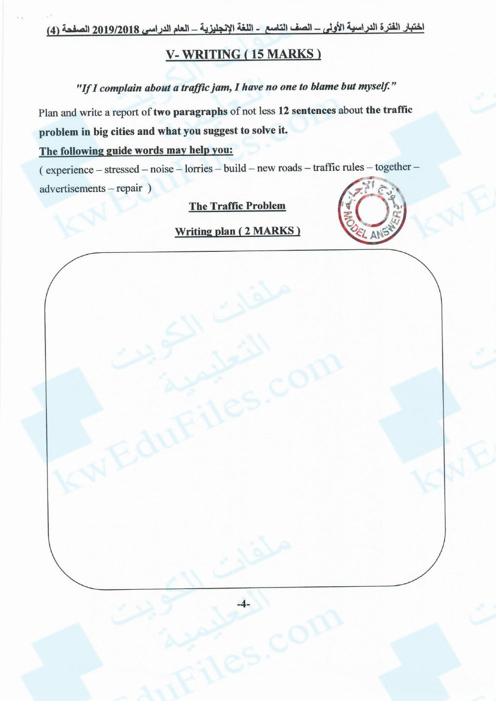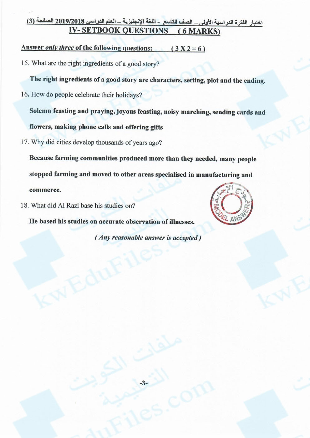 تم إيجاد الملف: نموذ اجابة الفروانية 2018