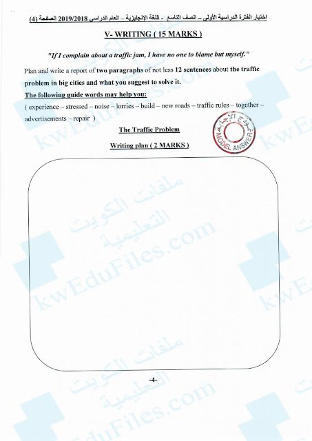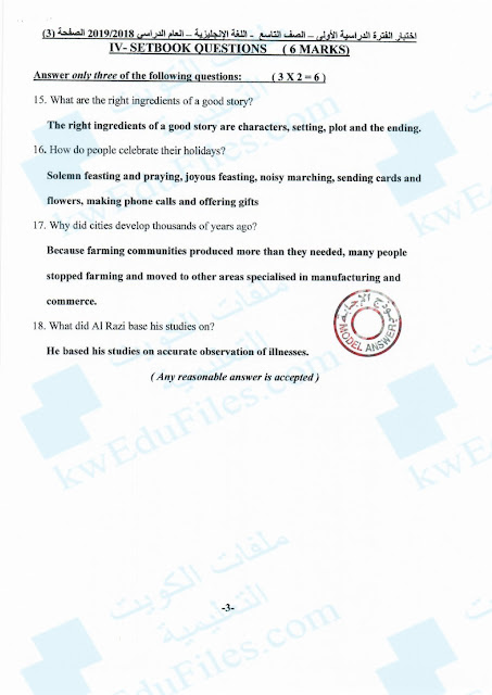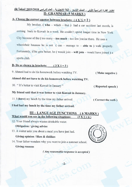 14. نموذج إجابة منطقة الجهراء التعليمية