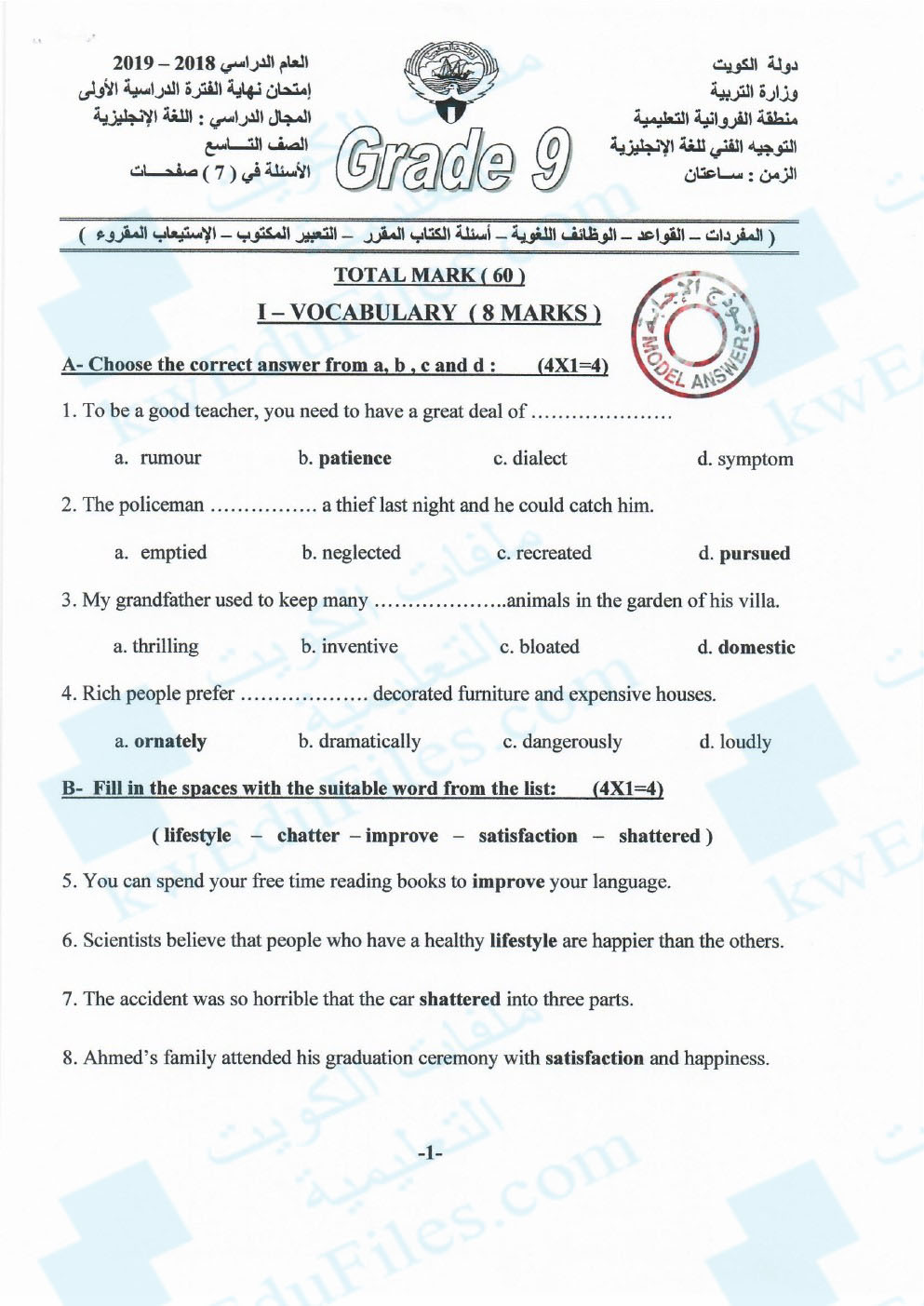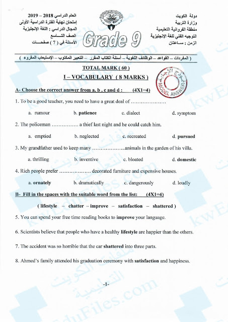 أحدث ملفات الصف التاسع, لغة انجليزية, الفصل الأول