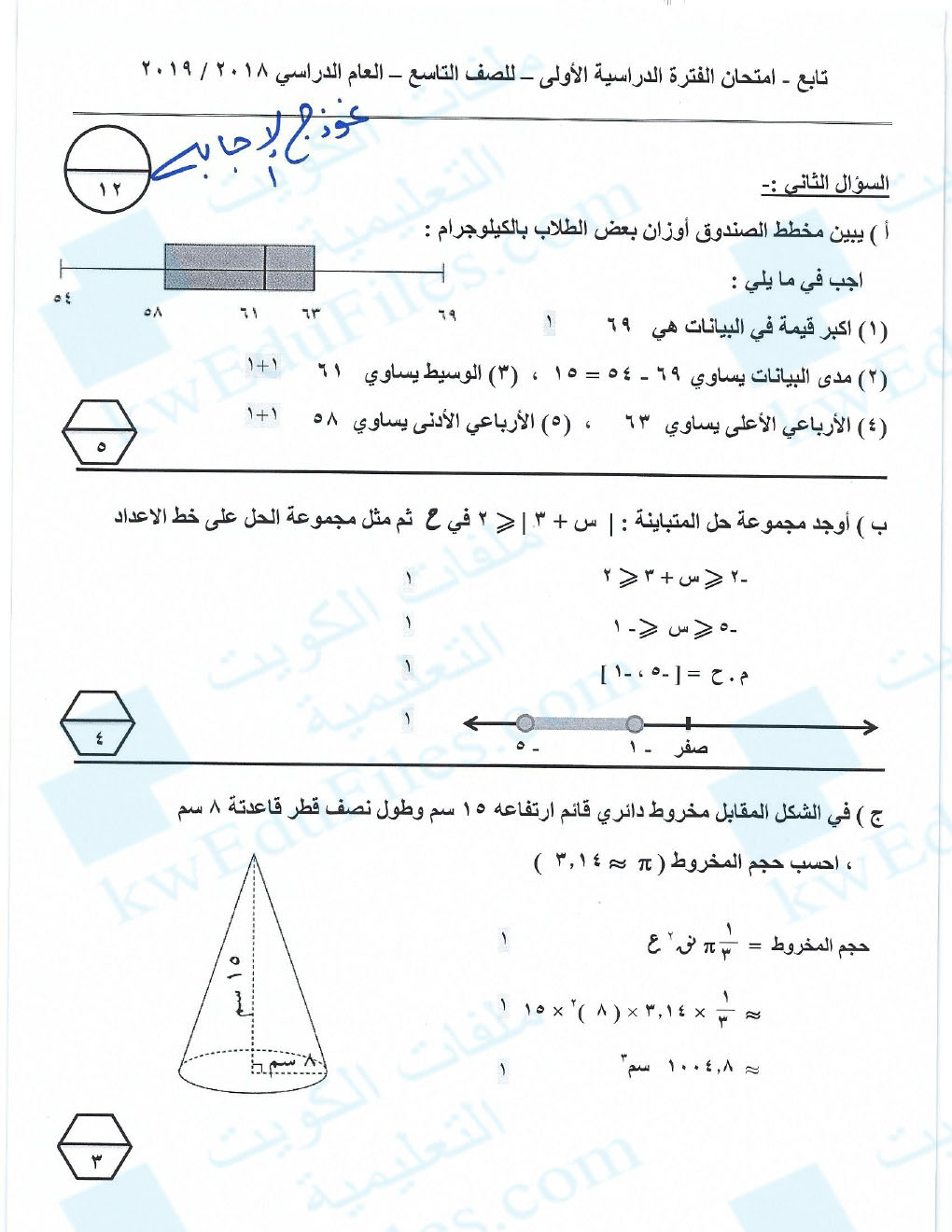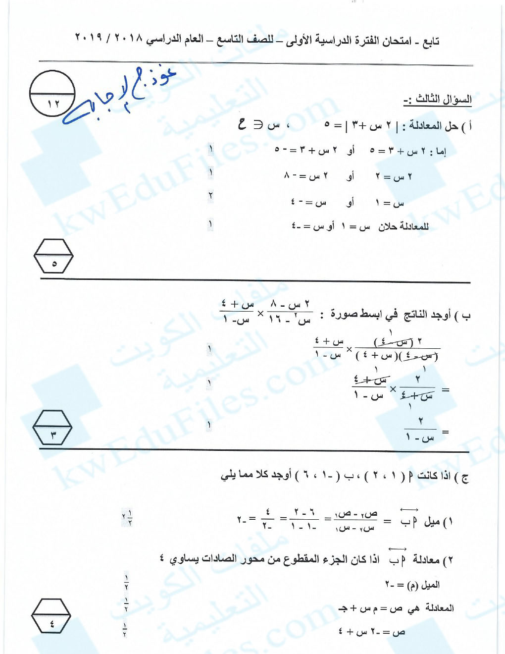 أنت هنا: موقع المناهج ⇦ المناهج الكويتية ⇦ الصف التاسع ⇦ رياضيات ⇦ الفصل الأول ⇦ حلول |