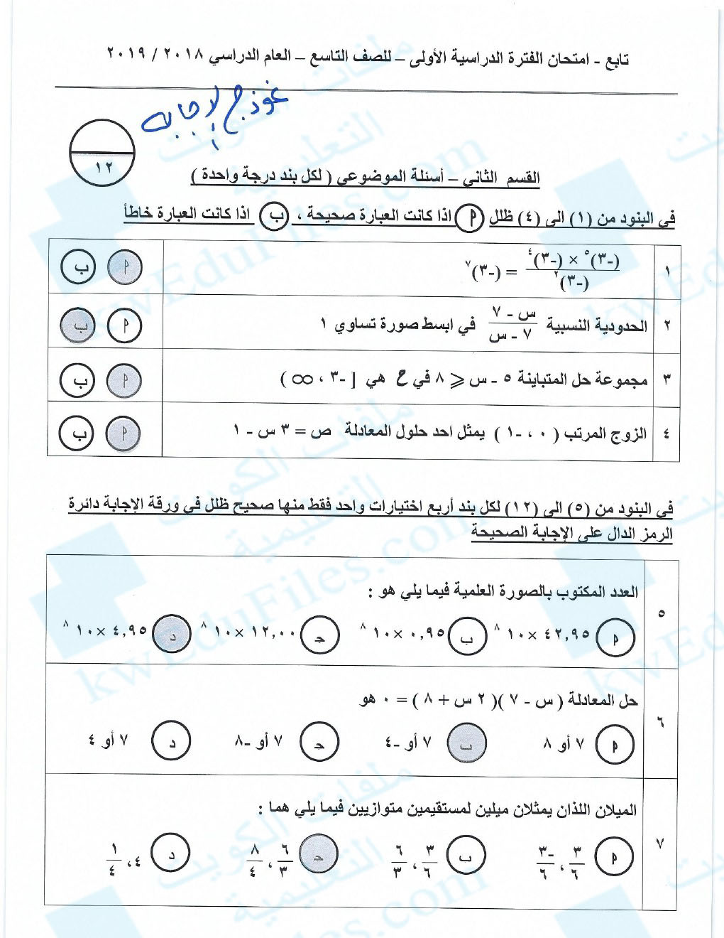 | السابق: نموذ اجابة الفروانية 2018 | الملف الحالي: 3097 | التالي: مراجعة التقويم الثاني حول الجبر والهندسة الإحداثية (نسخة 2) |