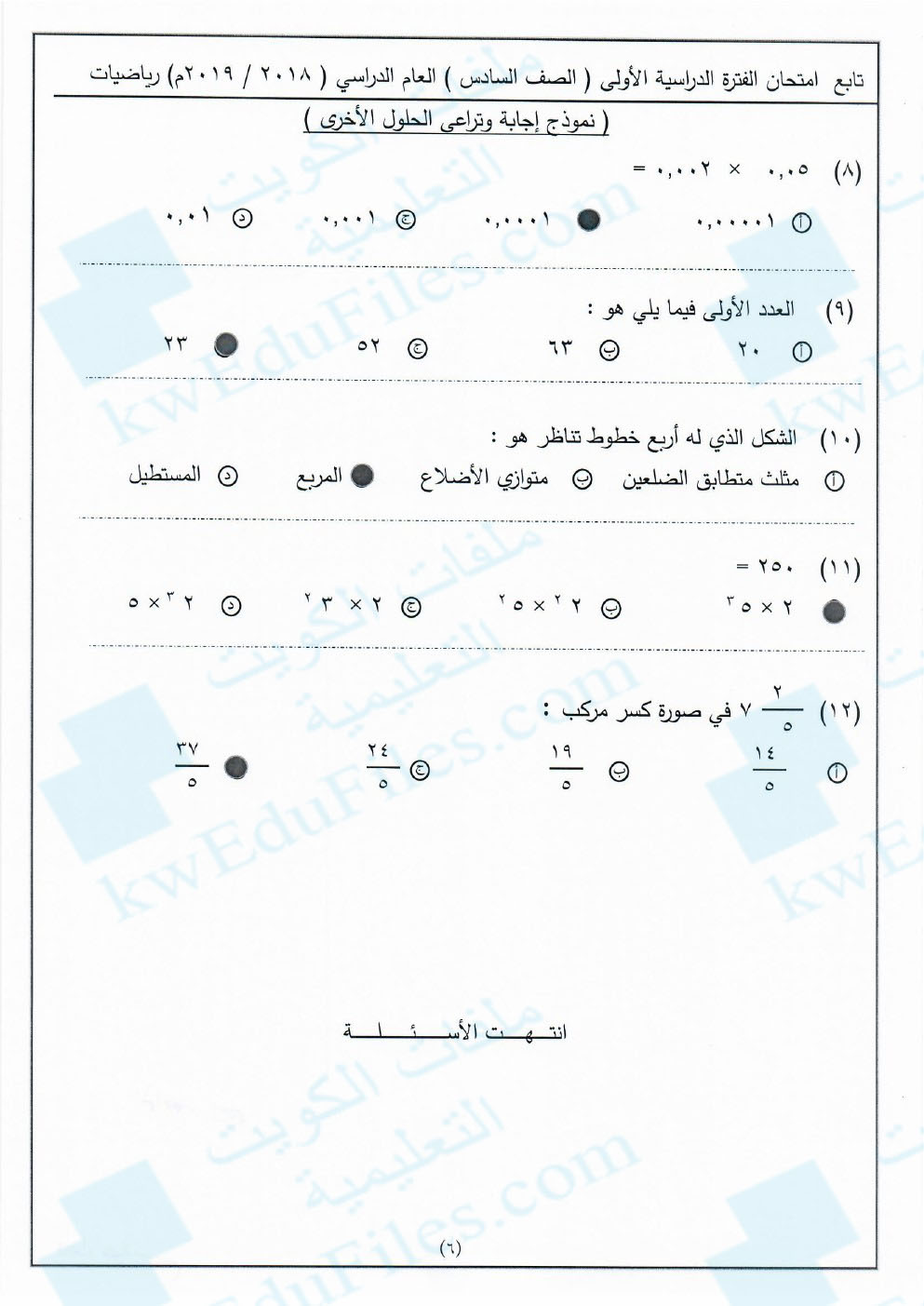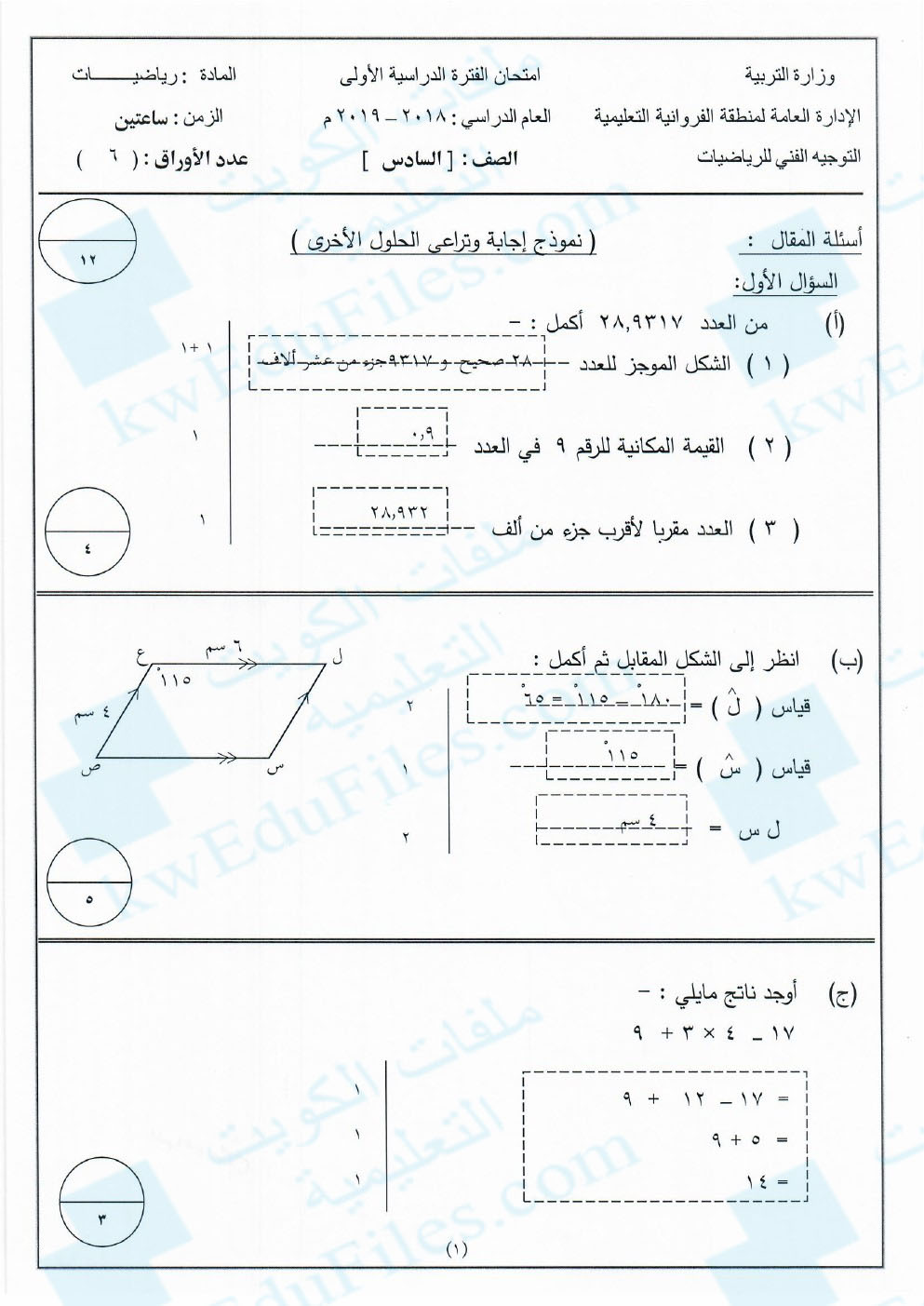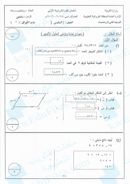 معلومات الملف: نموذج اجابة الفروانية 20182019 | ||