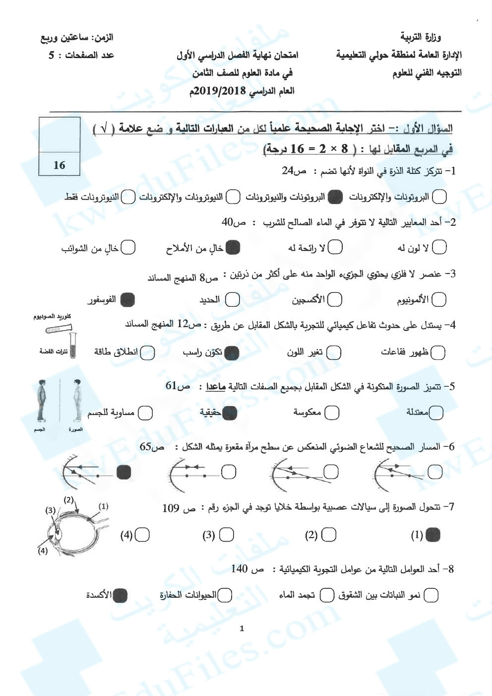 | أنت هنا: موقع المناهج ⇦ المناهج الكويتية ⇦ الصف الثامن ⇦ علوم ⇦ الفصل الأول ⇦ حلول |