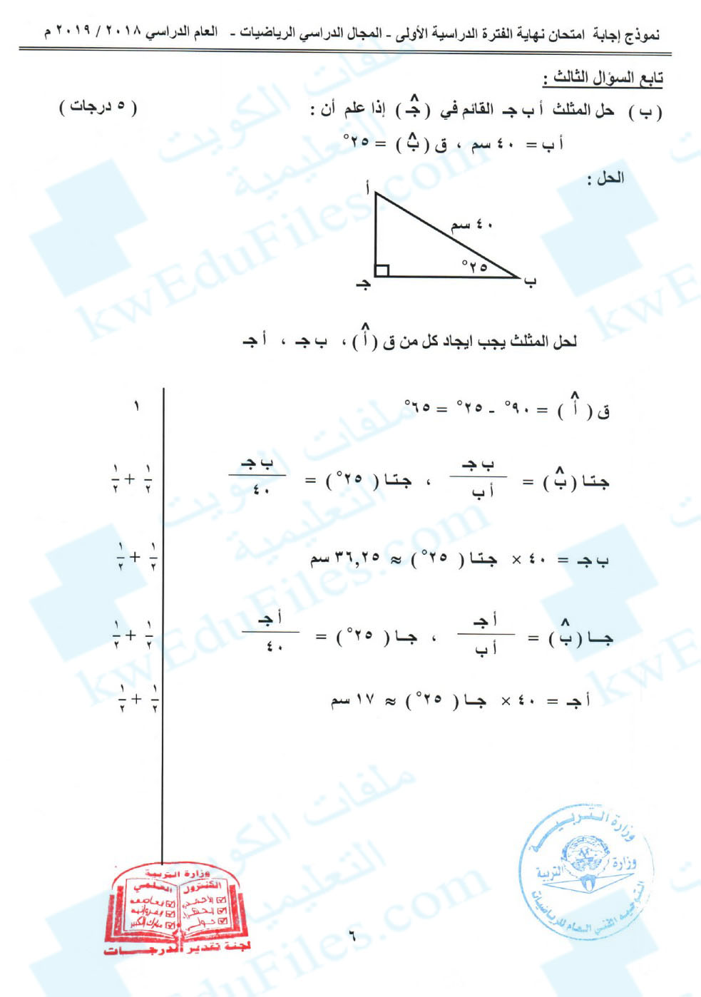 11. الصف السادس, لغة انجليزية, اختبار تجريبي مجاب لمنطقة الفروانية التعليمية