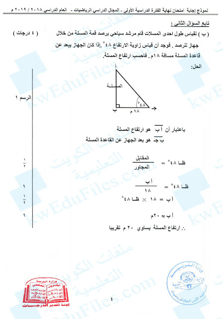 | نموذج اجابة 2018 - إعداد: التوجيه الفني العام للرياضيات | ||
