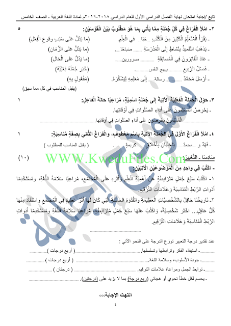 معلومات الملف: نموذج اجابة التعليم الخاص في مادة اللغة العربية للصف الخامس | ||