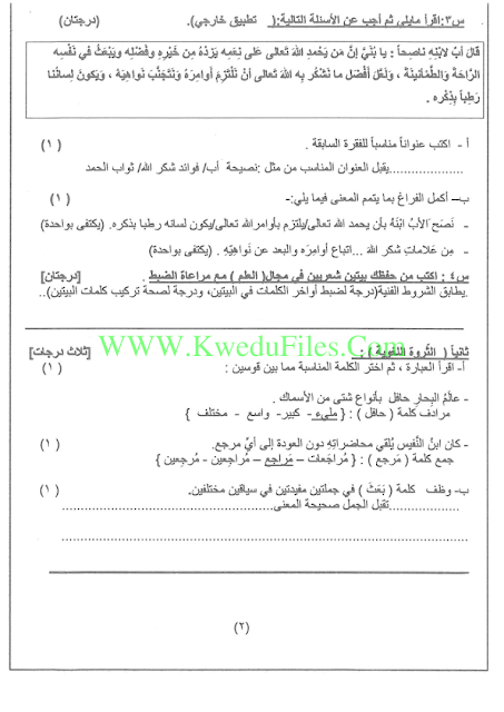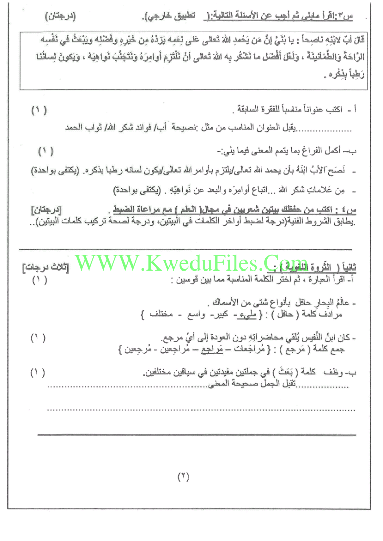 تم إيجاد الملف: نموذج اجابة اللغة العربية لمنطقة العاصمة2018/