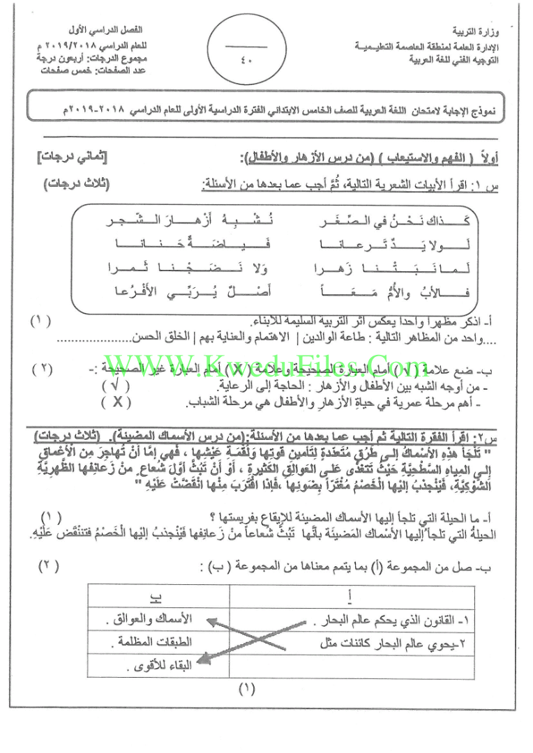 معلومات الملف: نموذج اجابة اللغة العربية لمنطقة العاصمة 2018/2019للصف الخامس | ||