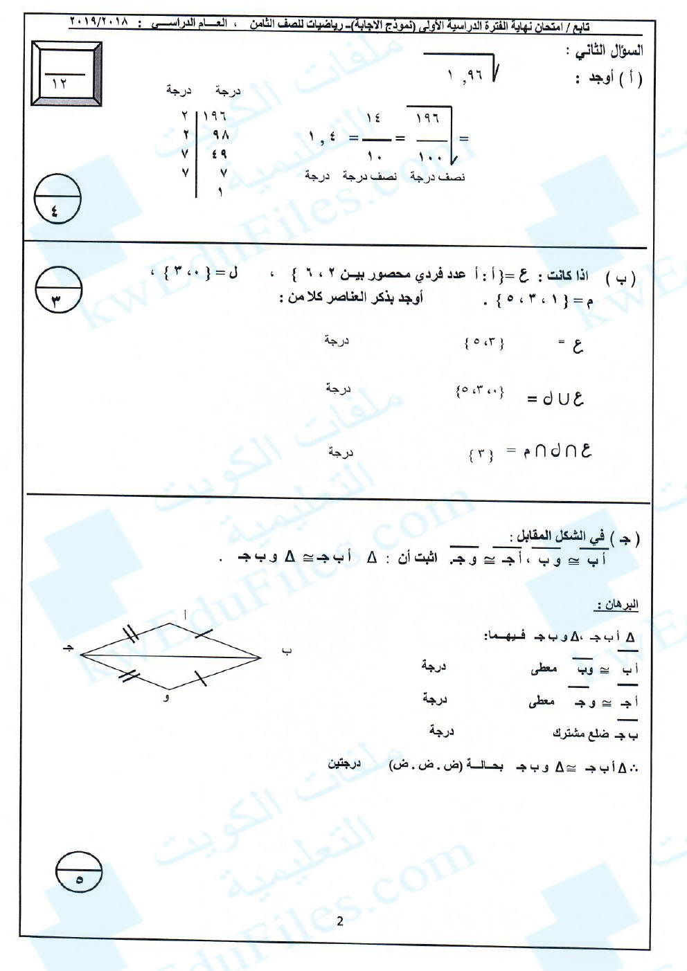 1. نموذج إجابة منطقة الفروانية التعليمية