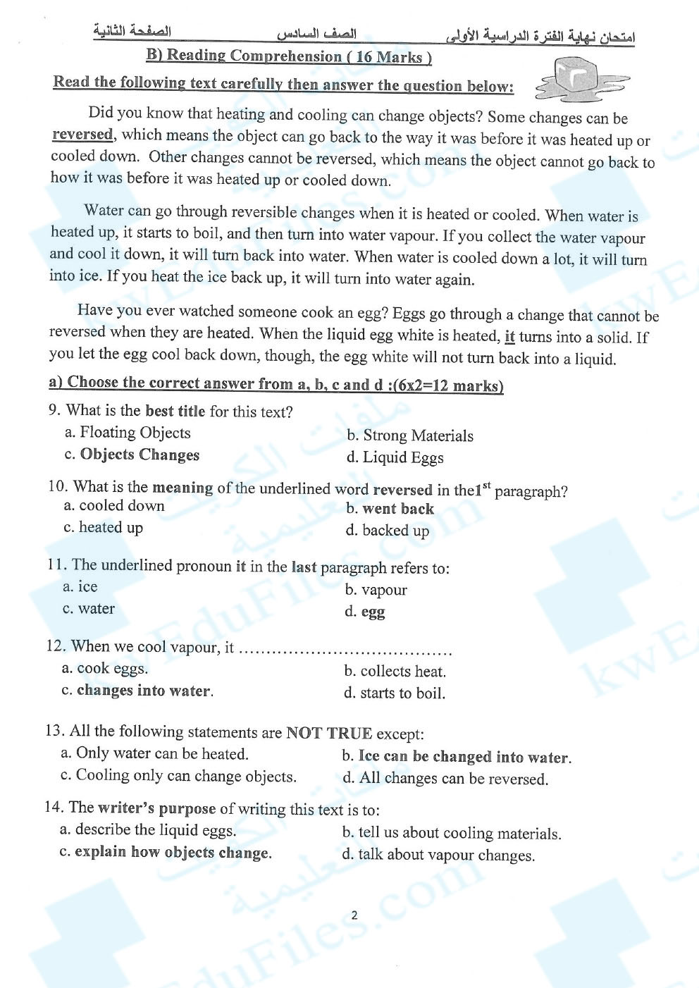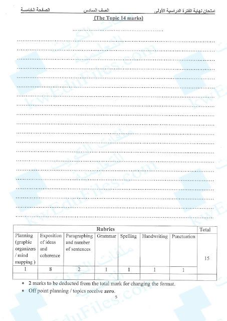 أحدث ملفات الصف السادس, لغة انجليزية, الفصل الأول