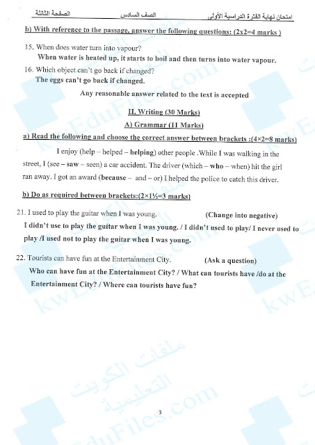 14. نموذج أسئلة منطقة الجهراء التعليمية