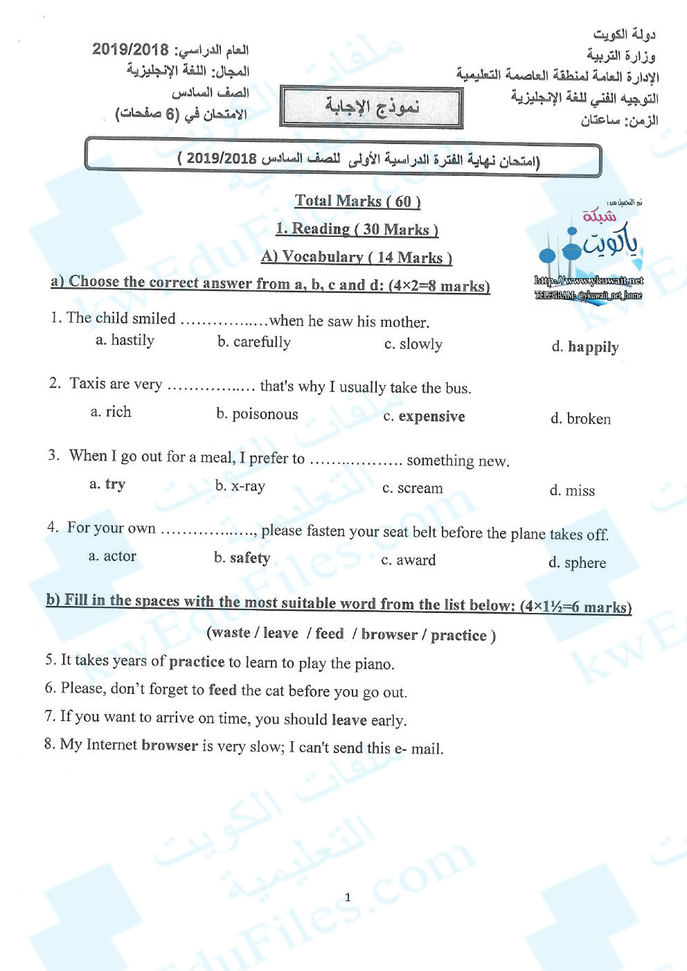 | 1. نموذج إجابة منطقة الفروانية التعليمية