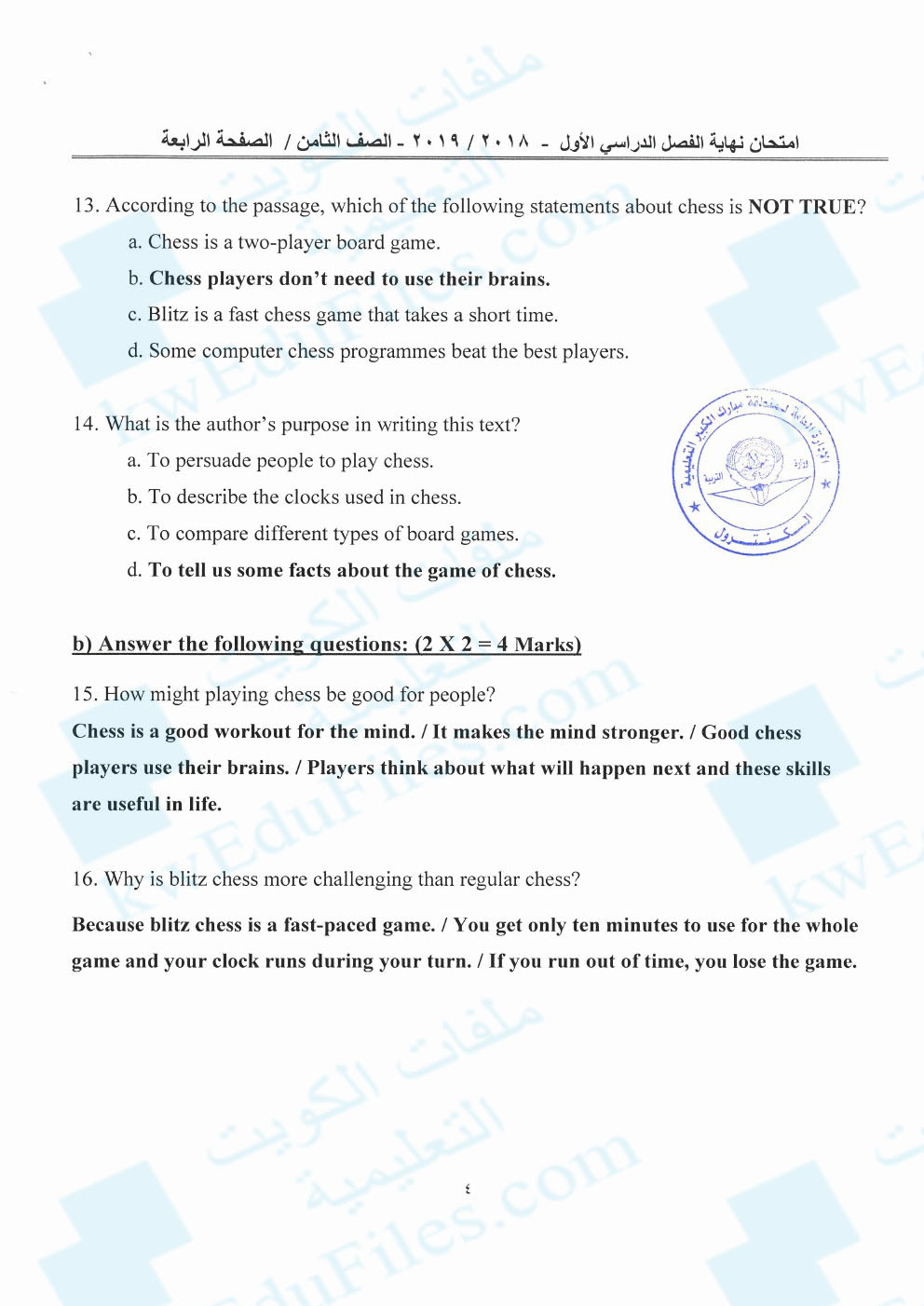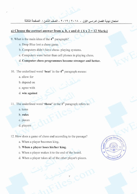 13. نموذج إجابة اختبار منطقة الجهراء التعليمية