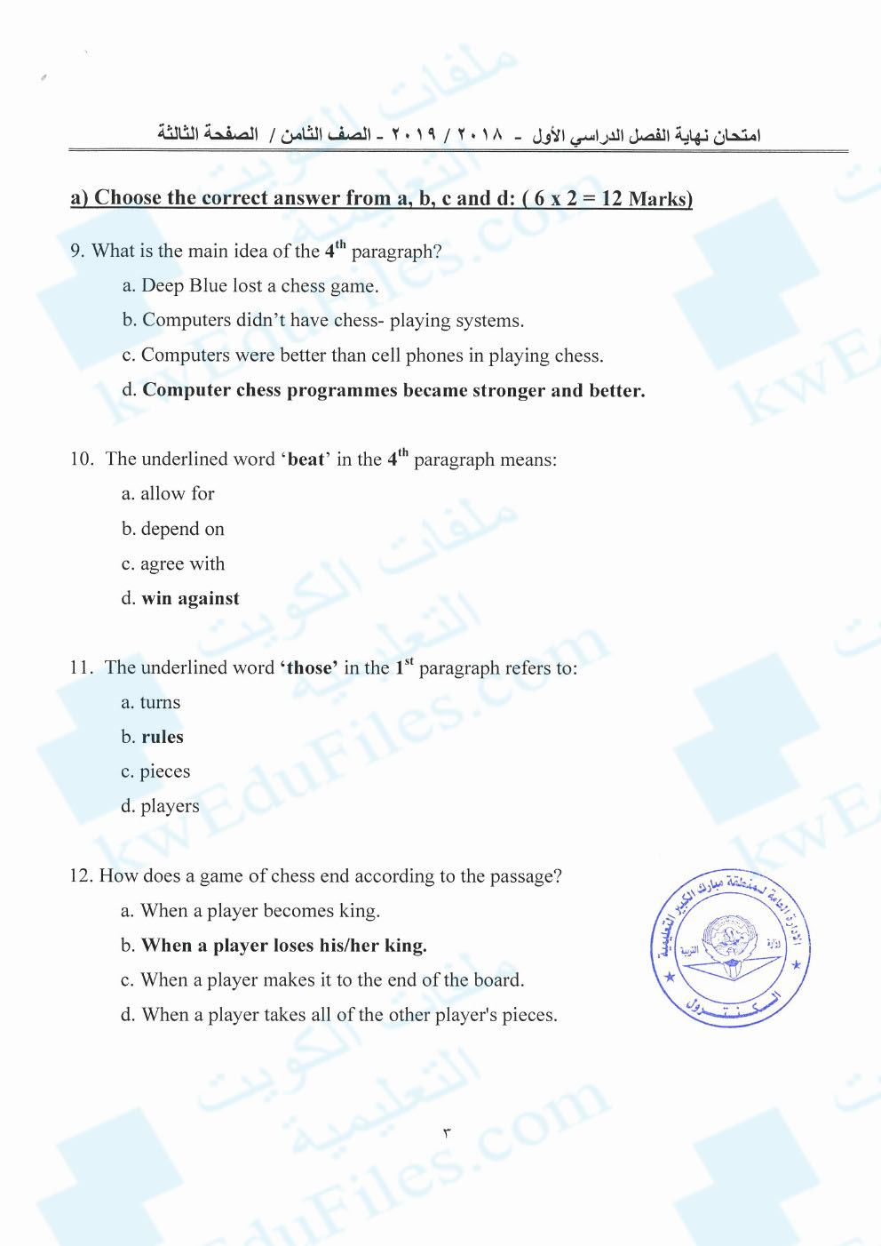 أحدث ملفات الصف الثامن, لغة انجليزية, الفصل الأول