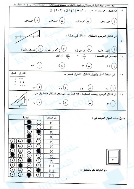 8. نماذج اختبارات تجريبية مرفقة بالحل