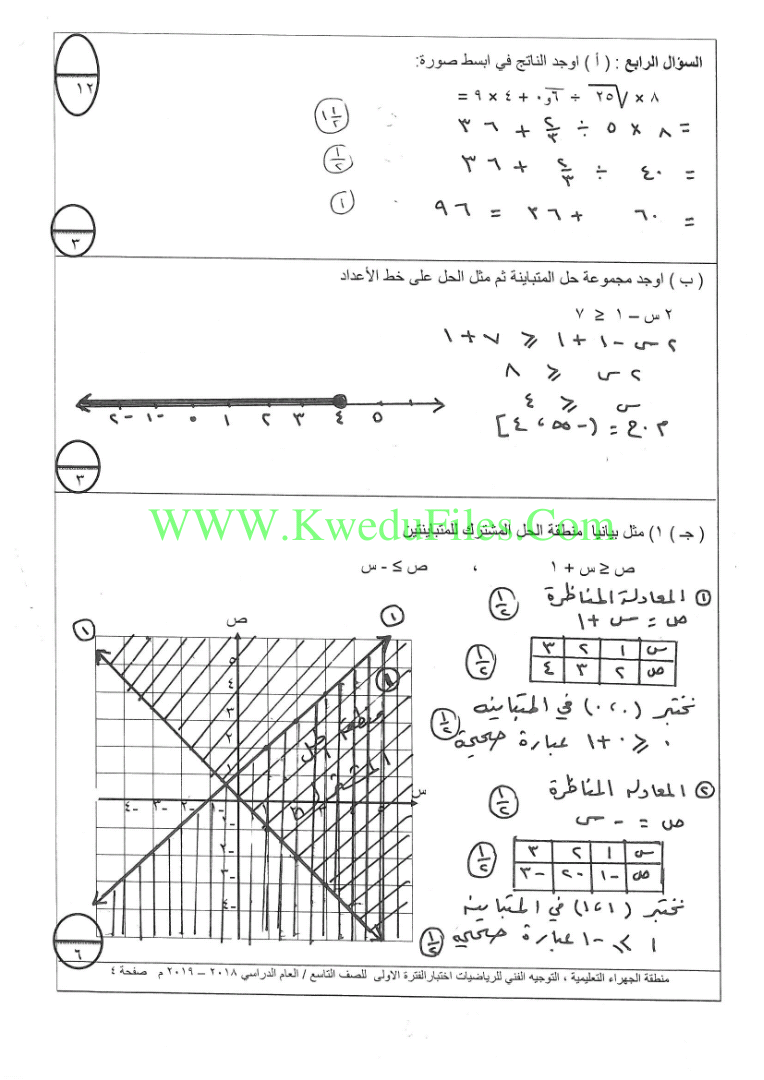 | نموذج اجابة الرياضيات منطقة الجهراء2018/ | ||