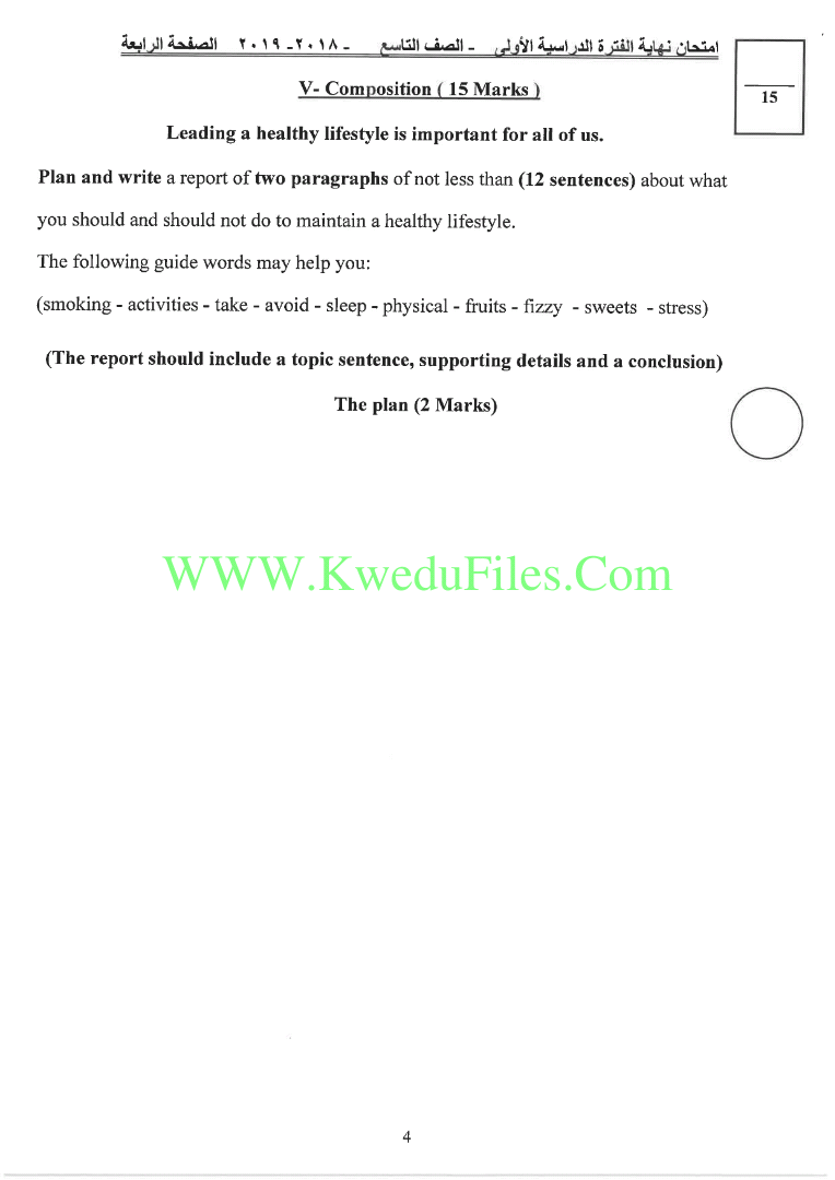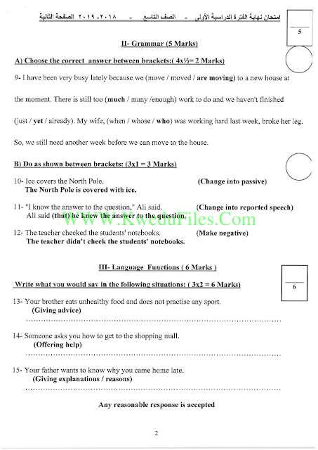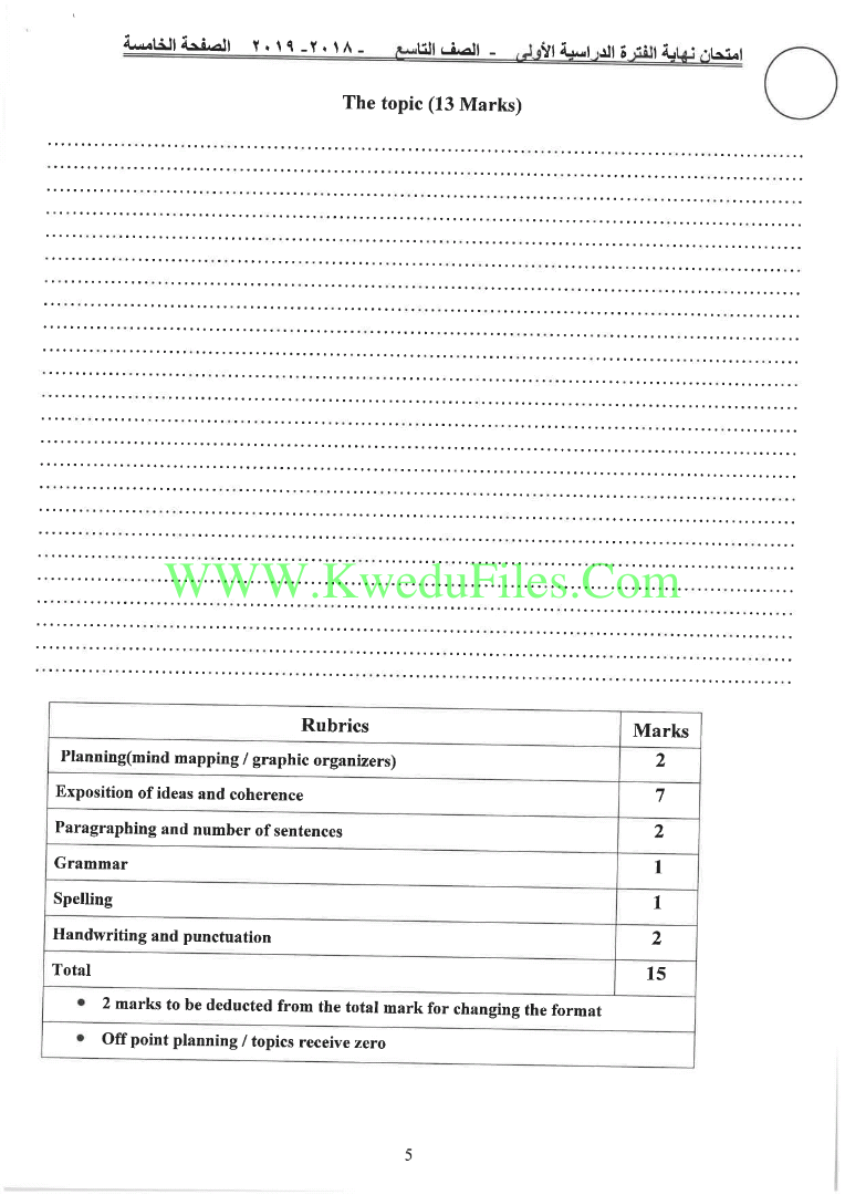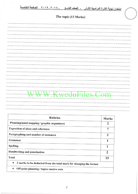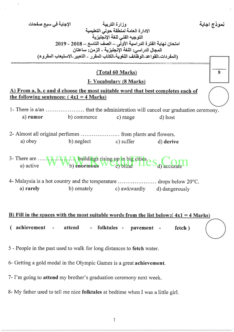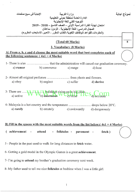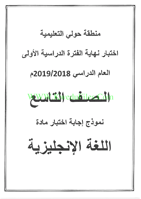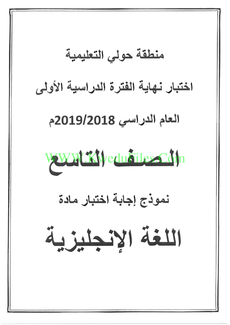 معلومات الملف: نموذج اجابة اللغة الانكليزية لمنطقة حولي للعام2018/2019للصف التاسع | ||