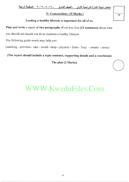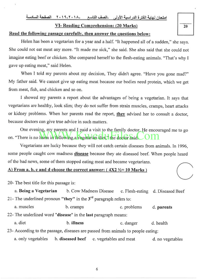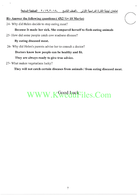 تم إيجاد الملف: اجابة مادة اللغة الانكليزية لمنطقة حولي 2018/