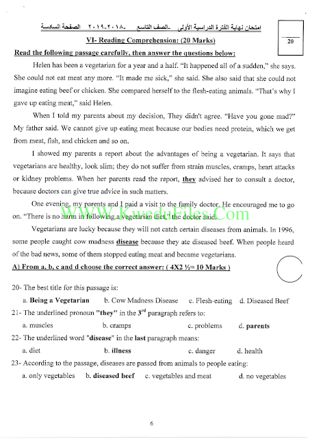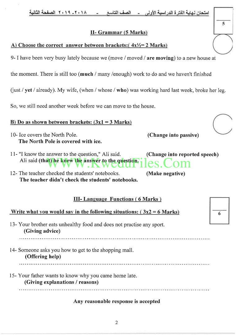 اجابة مادة اللغة الانكليزية لمنطقة حولي 2018/ | ||