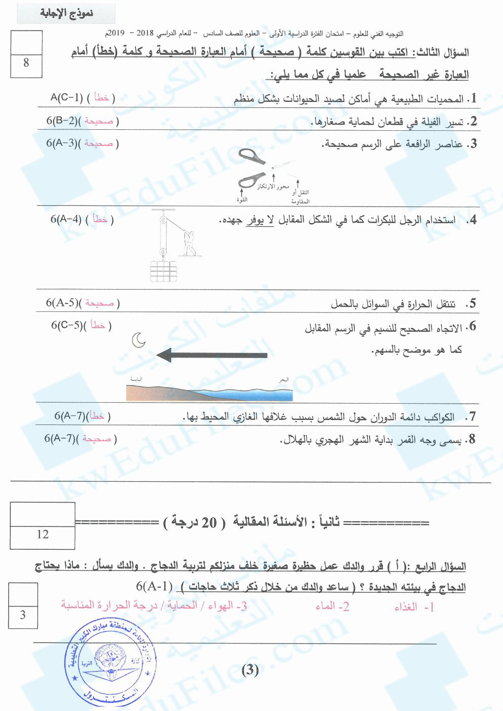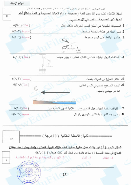 6. اختبار تجريبي مجاب للورقة التقويمية الأولى