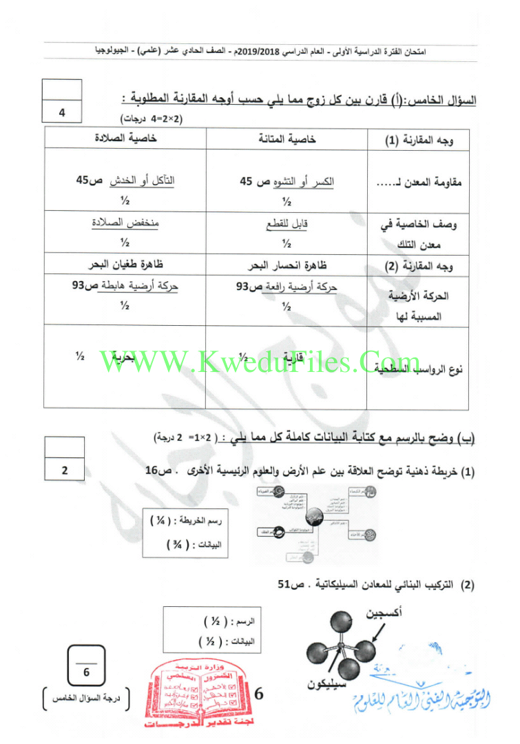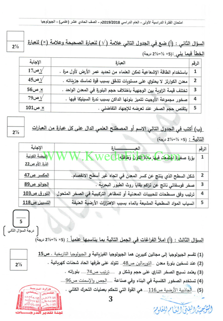 معلومات الملف: نموذج اجابة مادة الجيولوجيا لعام2018/2019 | ||