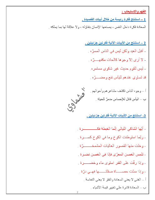1. لغة عربية, الفصل الثاني, 2025/2026, الثروة اللغوية الأبيات للمقررة حفظها