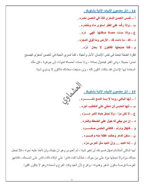 مذكرة الموضوع الثالث(الغبطة فكرة), العشماوي, الصف الثاني عشر, لغة عربية, الفصل الثاني, 2017-2018 - المناهج الكويتية
