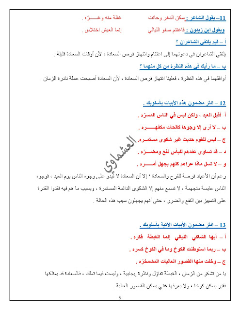 9. عشرة اختبارات للمراجعة النهائية (توقعات العشماوي)