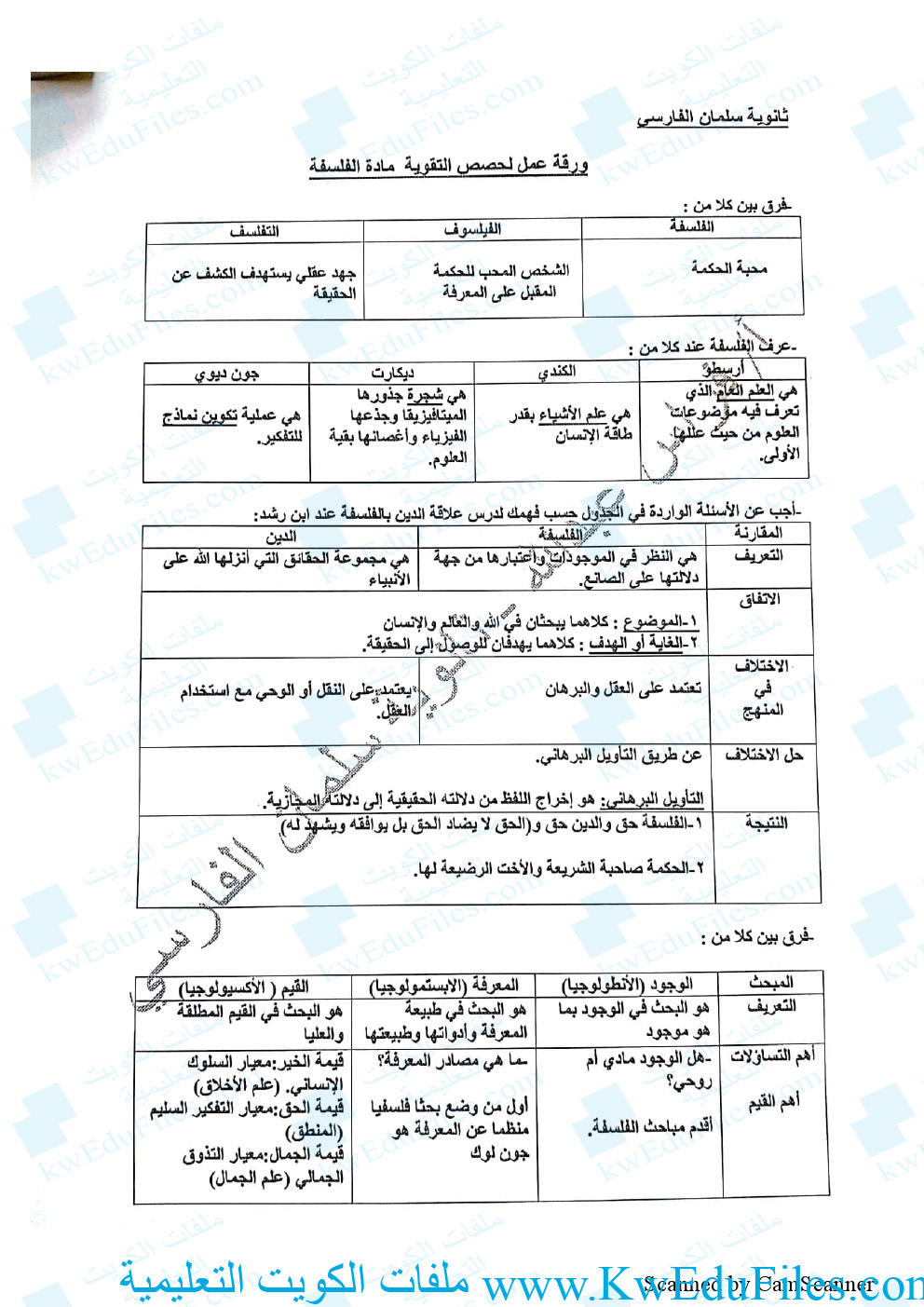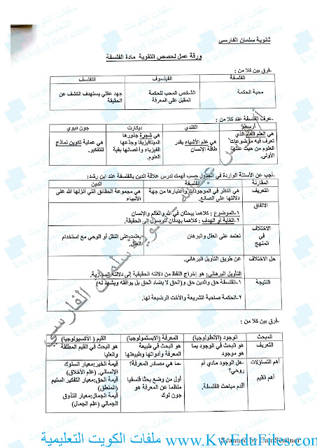 معلومات الملف: أوراق عمل لحصص التقوية الصف الثاني عشر الأدبي في مادة الفلسفة - الفصل الاول من العام الدراسي 20182019 | ||