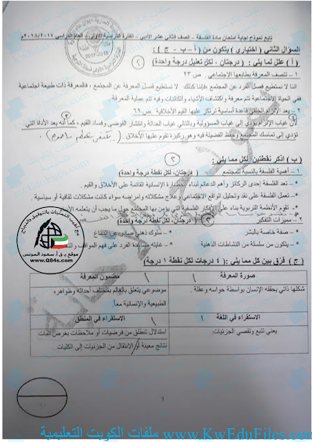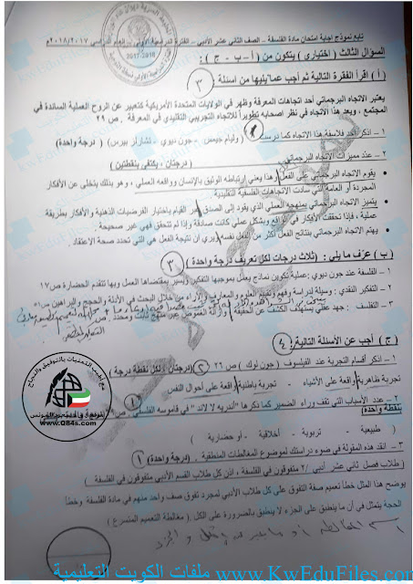 معلومات الملف: امتحان نهاية الفترة الاولى 20172018 الصف الثاني عشر الأدبي في مادة الفلسفة - الفصل الاول من العام الدراسي 20182019 | ||