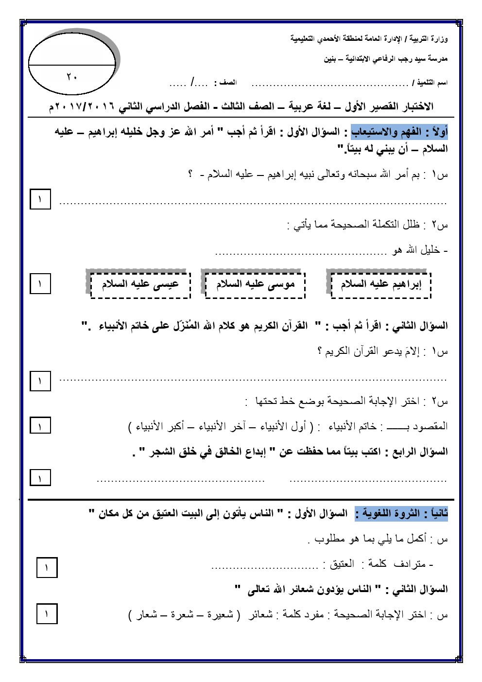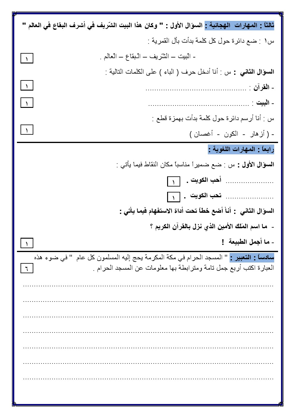 | التقييم | اجتماعيات | ️ 1 |