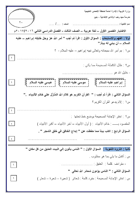 معلومات الملف: يحتوي الملف على نماذج اختبار لمادة اللغة العربية للصفوف من الاول حتى الرابع عدد اوراق هذا الملف 40 ورقة ويتضمن نماذج اختبار | ||