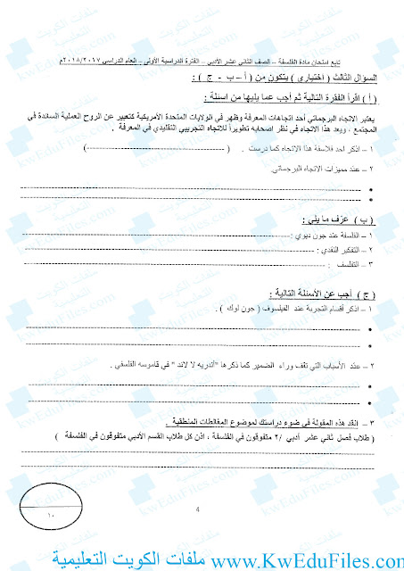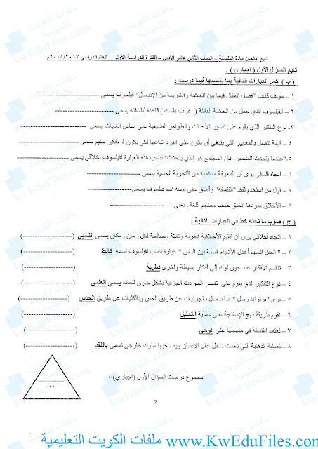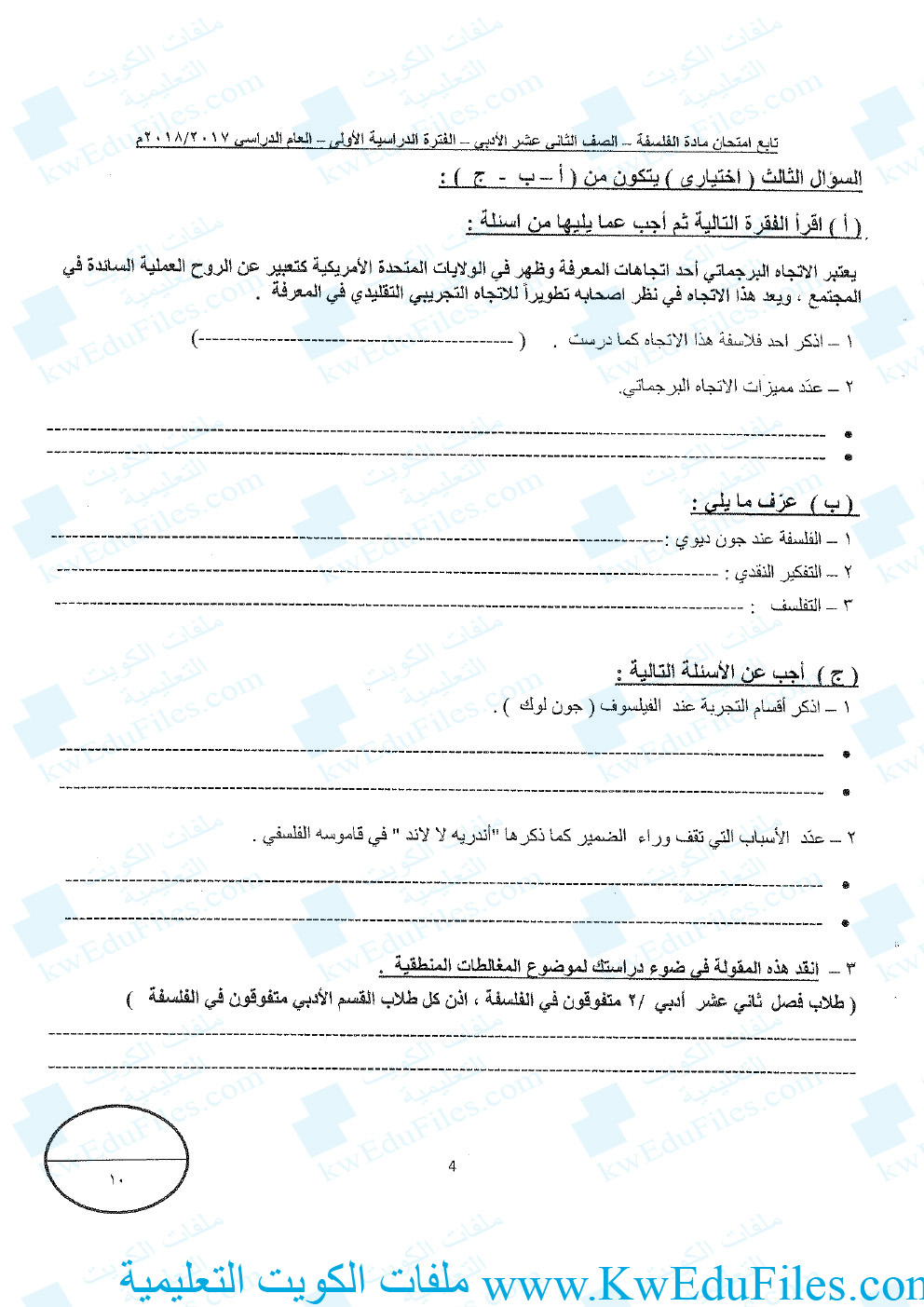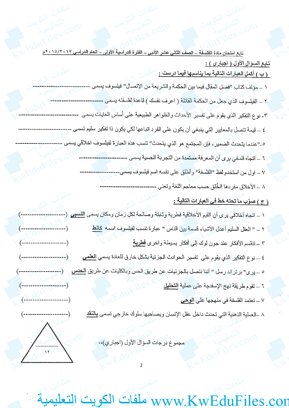 الفصل الأول من العام الدراسي 20182019 مادة الفلسفة للصف الثاني عشر الأدبي