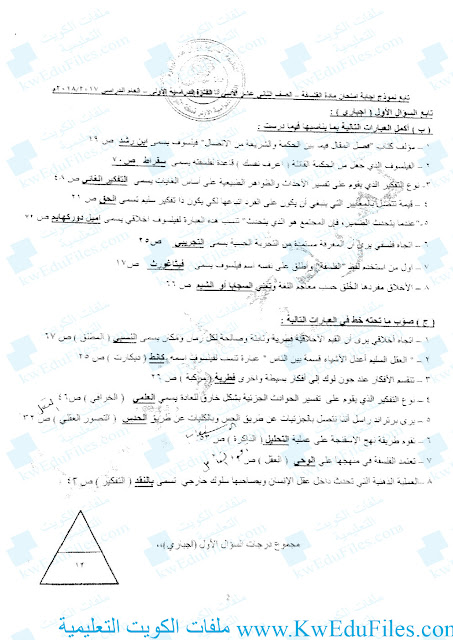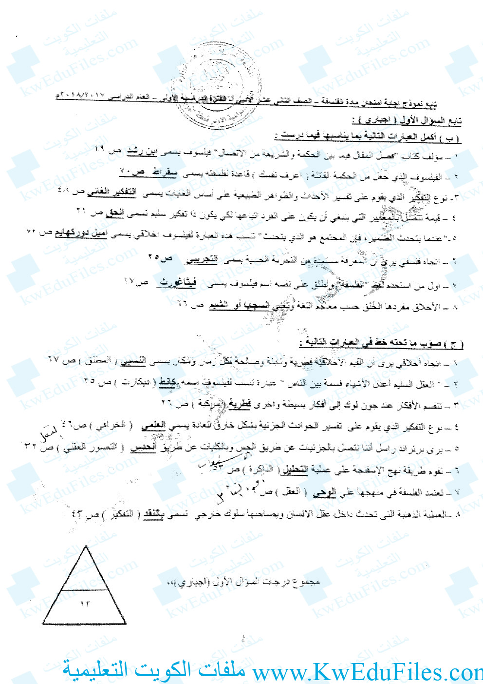 13. فلسفة, الفصل الثاني, 2024-2025, نموذج إجابة الاختبار النهائي الرسمي المعتمد من التوجيه الفني العام