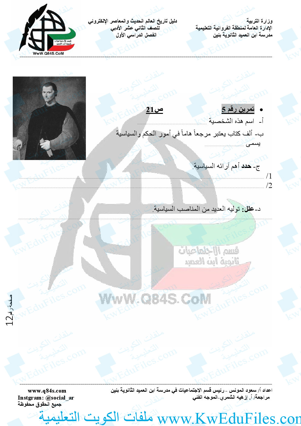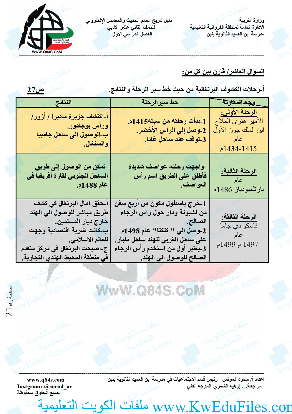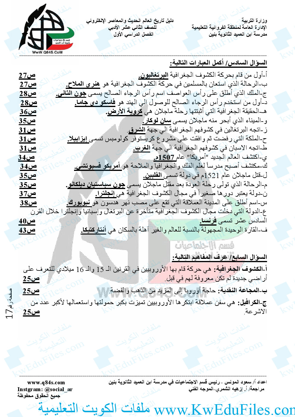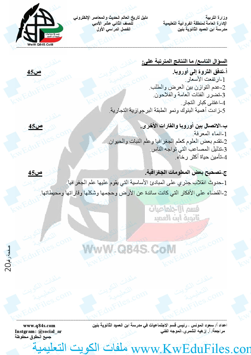 معلومات الملف: دليل التاريخ الصف الثاني عشر الأدبي - الفصل الاول من العام الدراسي 20182019 وفق المنهاج الكويتي | ||