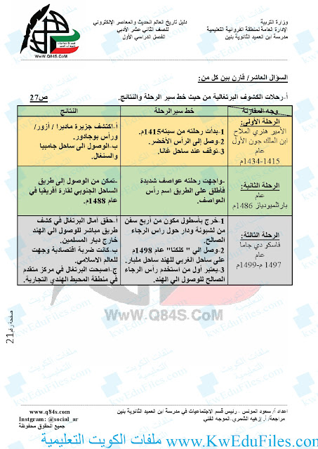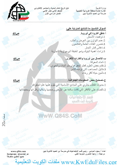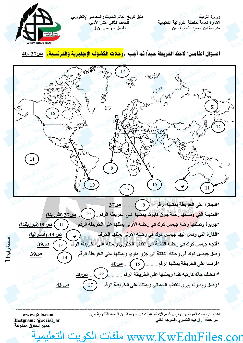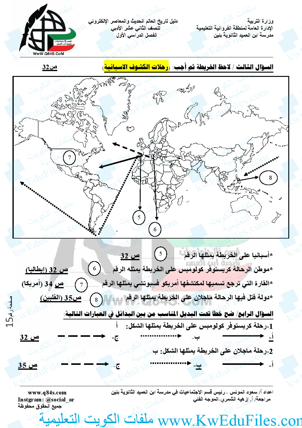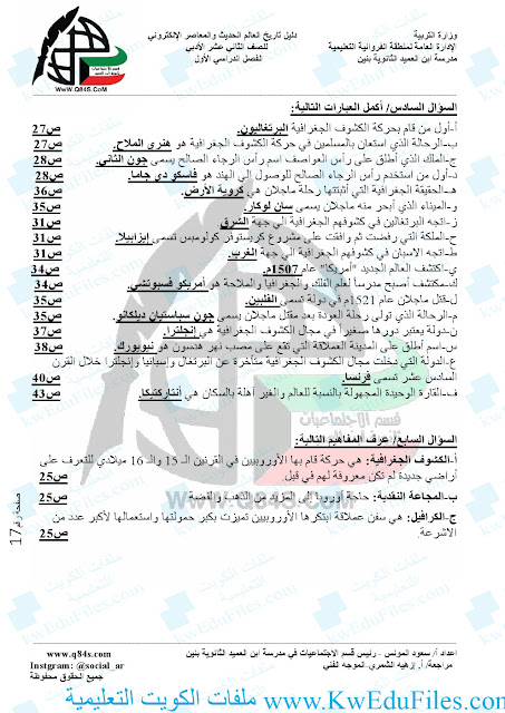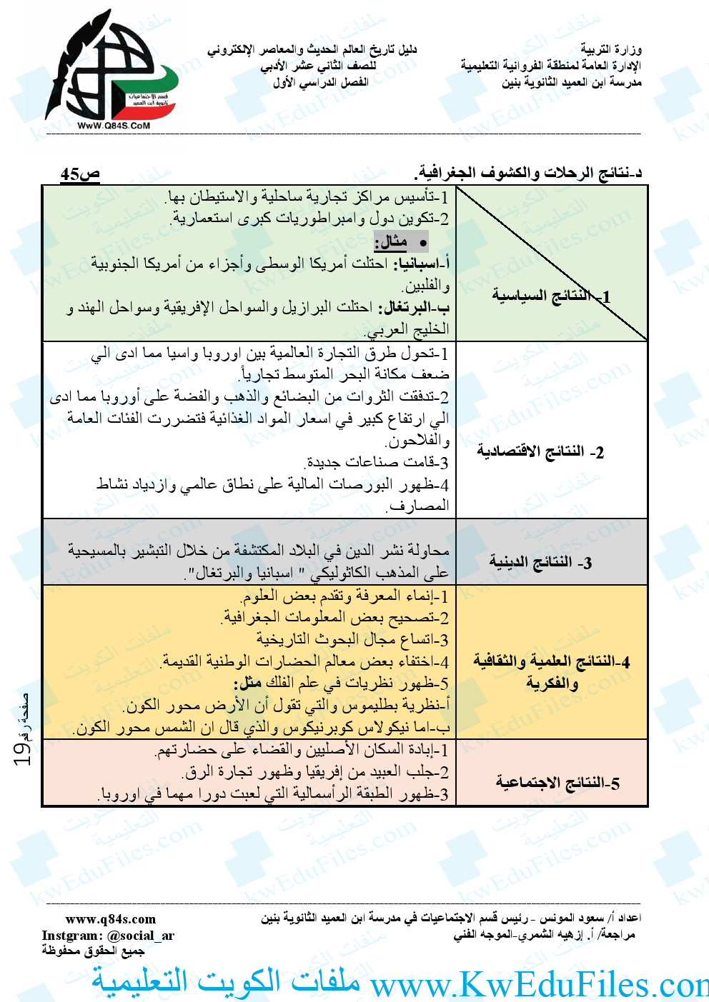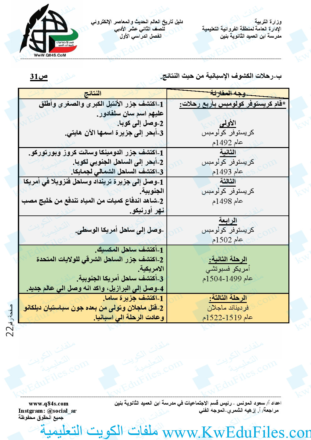 معلومات الملف: دليل التاريخ الصف الثاني عشر الأدبي - الفصل الاول من العام الدراسي 20182019 وفق المنهاج الكويتي | ||