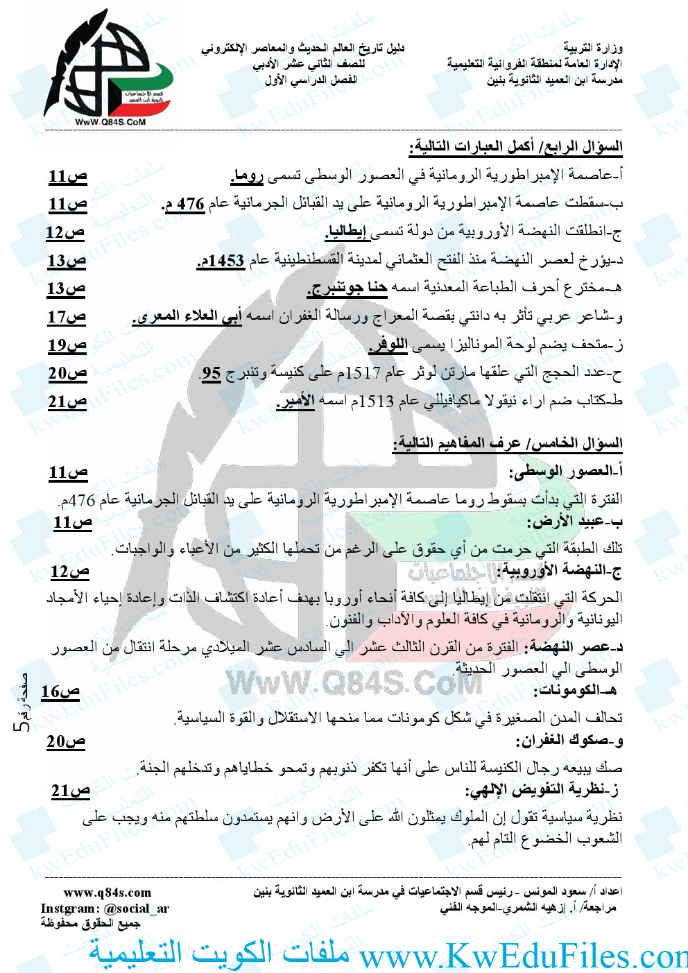 أكثر خمس كلمات زيارة اليوم بحسب: تاريخ - الصف الثاني عشر الأدبي - الفصل الأول