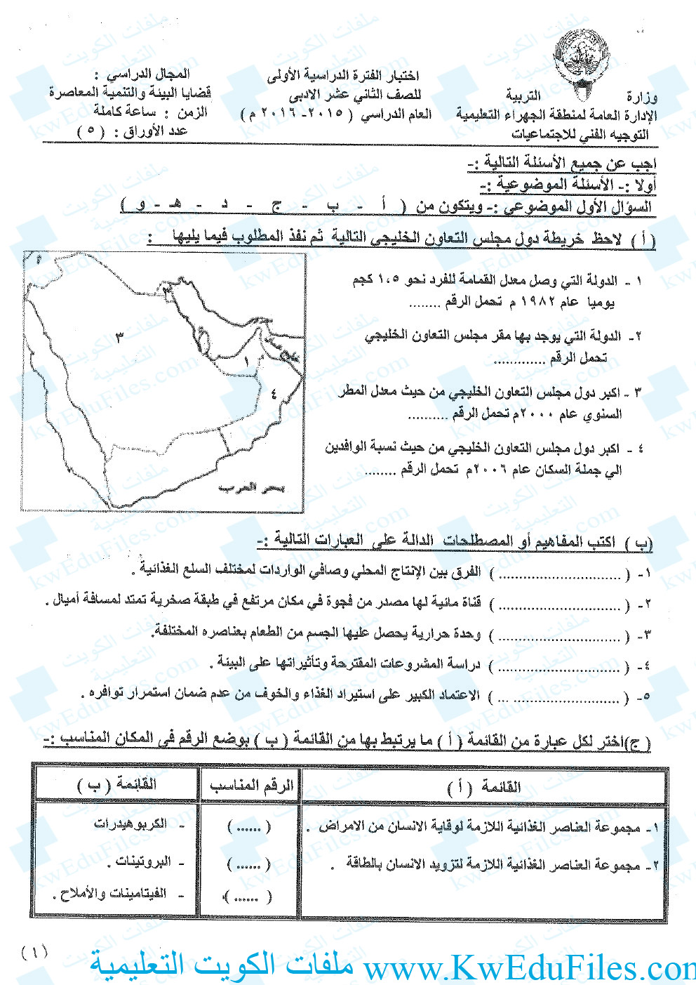| أنت هنا: موقع المناهج ⇦ المناهج الكويتية ⇦ الصف الثاني عشر الأدبي ⇦ جغرافيا ⇦ الفصل الأول ⇦ حلول |