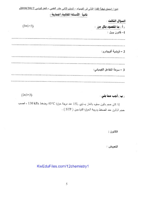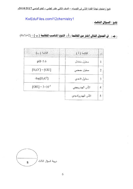 5. كيمياء, الفصل الأول, 2025-2026, بنك الأسئلة والأجوبة الرسمي