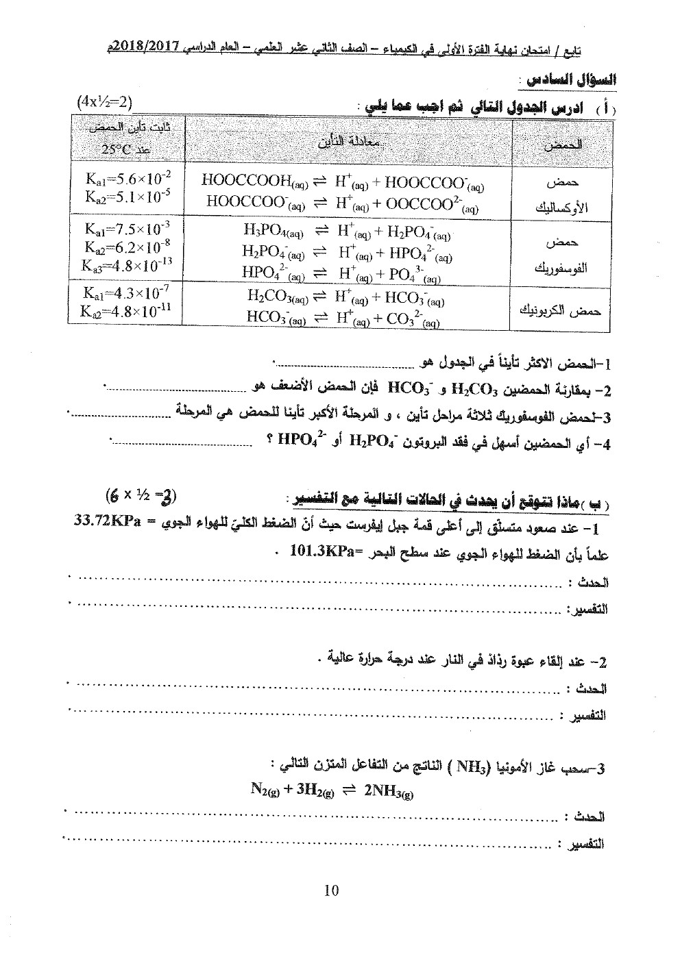 12. كيمياء, الفصل الثاني, 2024-2025, توقعات نهائية للاختبار القصير الثاني (أسئلة)