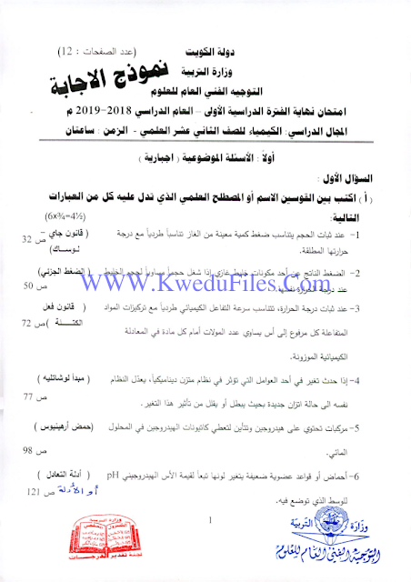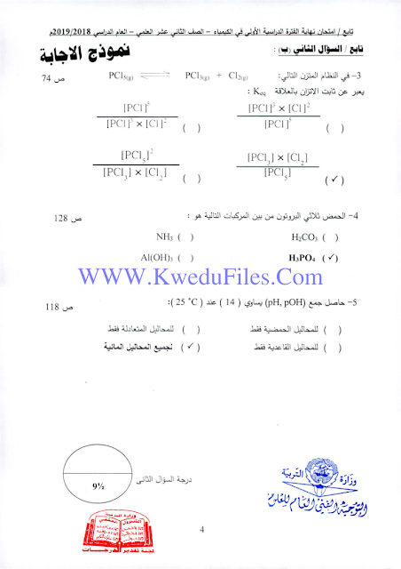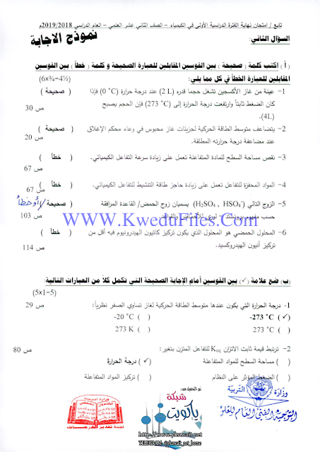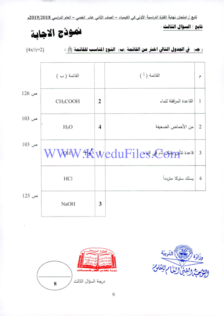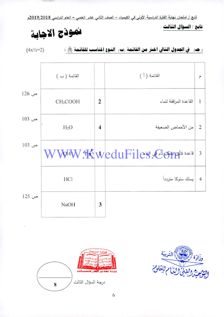 تم إيجاد الملف: نموذج اجابة اختبار الكيمياء2018/
