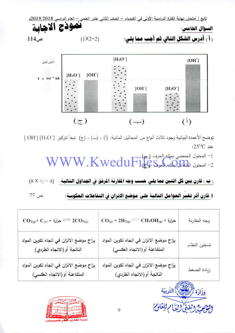 | نموذج اجابة اختبار الكيمياء2018/ | ||