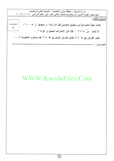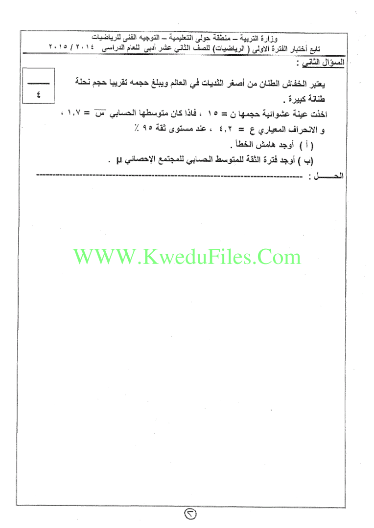 12. إحصاء, الفصل الثاني, 2024-2025, نموذج إجابة الاختبار النهائي الرسمي المعتمد من التوجيه الفني العام