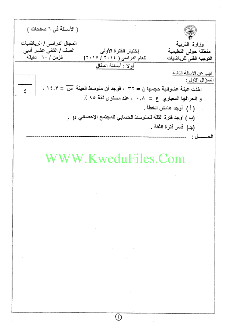 أنت هنا: موقع المناهجالمناهج الكويتية الصف الثاني عشر الأدبي إحصاء الفصل الأول مذكرات وبنوك