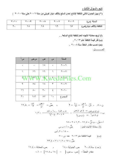 أنت هنا: موقع المناهجالمناهج الكويتية الصف الثاني عشر الأدبي إحصاء الفصل الأول حلول